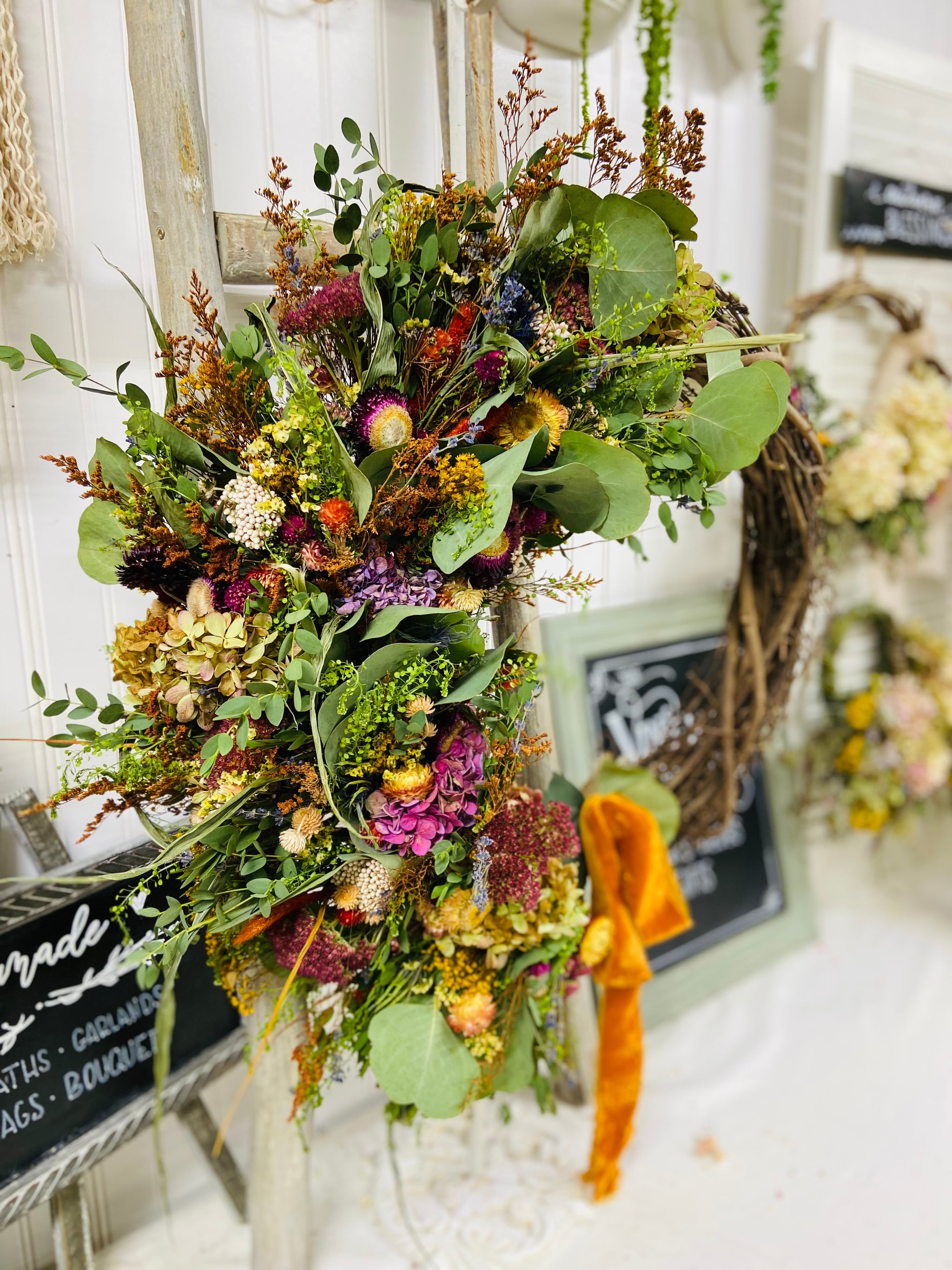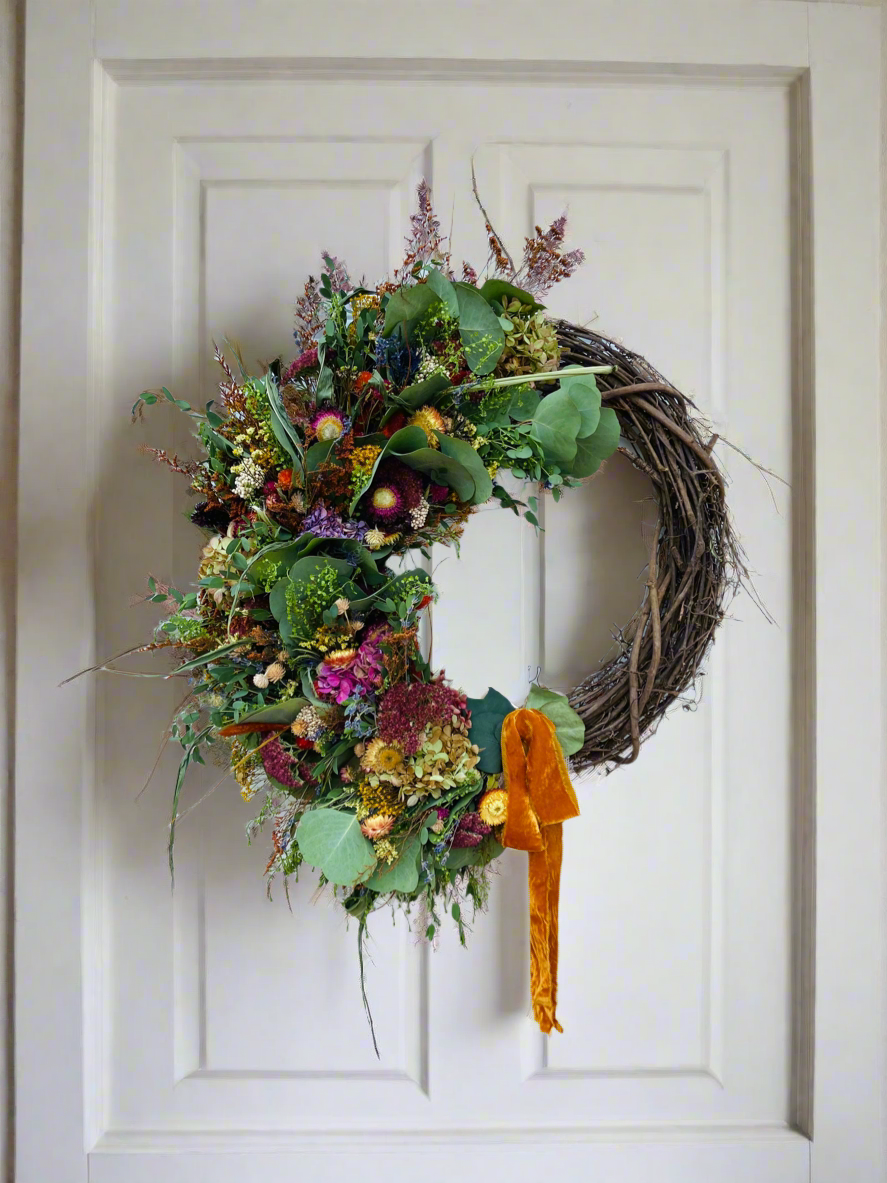 Laura Rhodes Naturals Autumn Crescent Dried Floral Wreath with Velvet Ribbon Elevate your cozy abode this season with our Autumn Crescent Dried Floral Wreath, a...