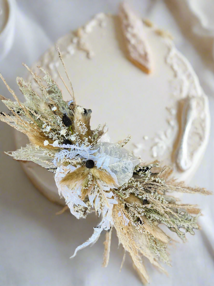 Add a touch of natural, bohemian elegance to your special day with our handcrafted Dried Floral Boho Wedding Cake Topper, created exclusively by Laura Rhodes Naturals. This beautiful piece is designed to be a lasting keepsake, providing a unique and rustic charm to your wedding cake.